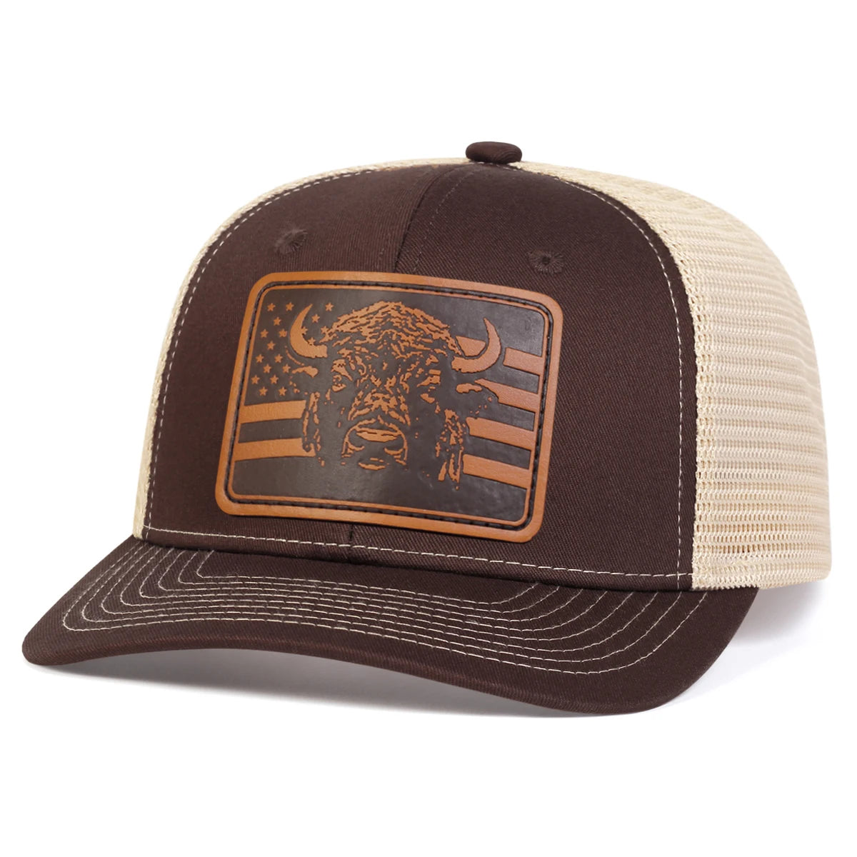 Show your pride with the Buffalo Trucker Hat, where Western heritage meets American spirit. Featuring a striking leather patch of a buffalo set against the American flag, this classic trucker cap is perfect for those who value strength, freedom, and the great outdoors. Durable, comfortable, and timeless, it’s a hat built for everyday adventures.