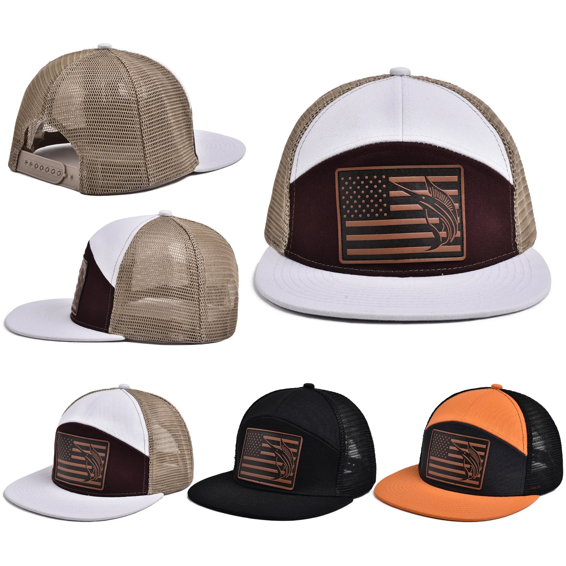 Designed for those who live for the water, the Fishing 7 Panel Flatbill Hat delivers bold style with rugged detail. Featuring a stitched leather patch on the front with an American flag and swordfish design, this hat blends patriotism with a passion for fishing. Its unique 7-panel construction sets it apart from standard hats, offering a standout look with a modern flatbill edge. Whether you’re casting lines or repping your lifestyle, this hat is made to stand out and hold strong.